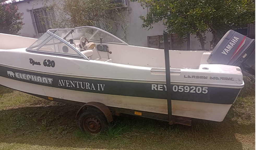 Embarcación tipo lancha a motor 'AVENTURA IV', matrícula REY 059205, modelo Elephant 620 Open, con motor fuera de borda marca YAMAHA, Nº de serie 6H1 -1045620. Construida por el astillero Larsen Marine, en P.R.F.V. (Plástico Reforzado y Fibra de Vidrio), de 6,13 M. de eslora, 1 ,94 M de manga, 0,76 M. de puntal, con peso de 2.000 Kg., color blanco con una franja negra, año 2012.