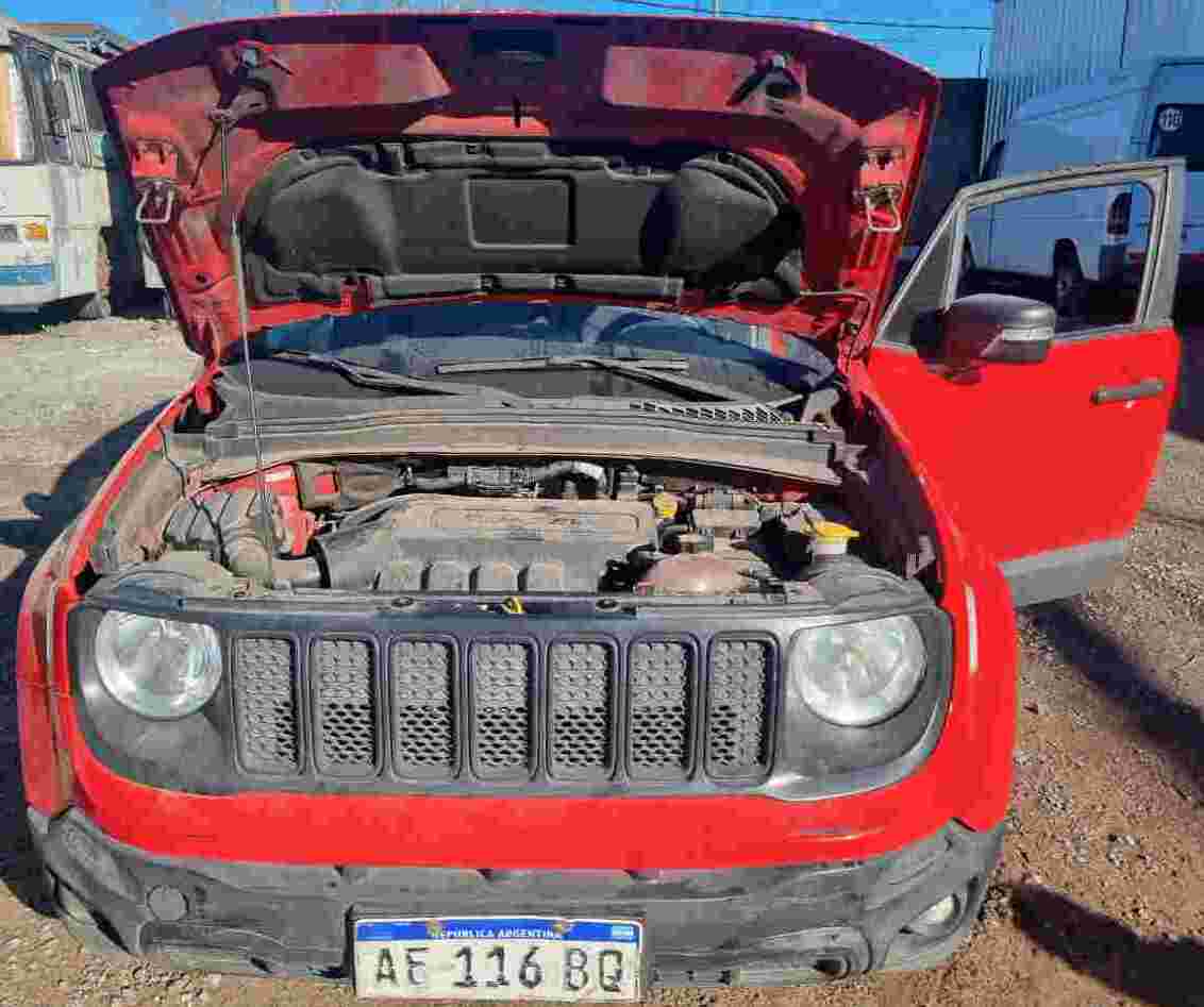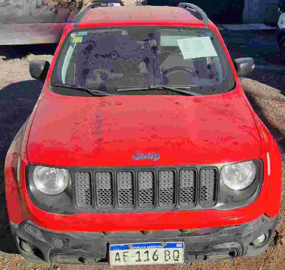 Automotor marca Jeep, modelo RENEGADE SPORT 1.8 AT6, tipo Rural 5 puertas, año 2020, motor N° 3627853, chasis N° 988611458MK332406, dominio AE116BQ, color rojo, cuenta con 127.876 km. Presenta pequeña abolladura en panel trasero derecho (lado del acompañante) y detalles en paragolpes delantero (lado conductor) y parte de la pintura. No tiene faltantes. El estado del vehículo es bueno.